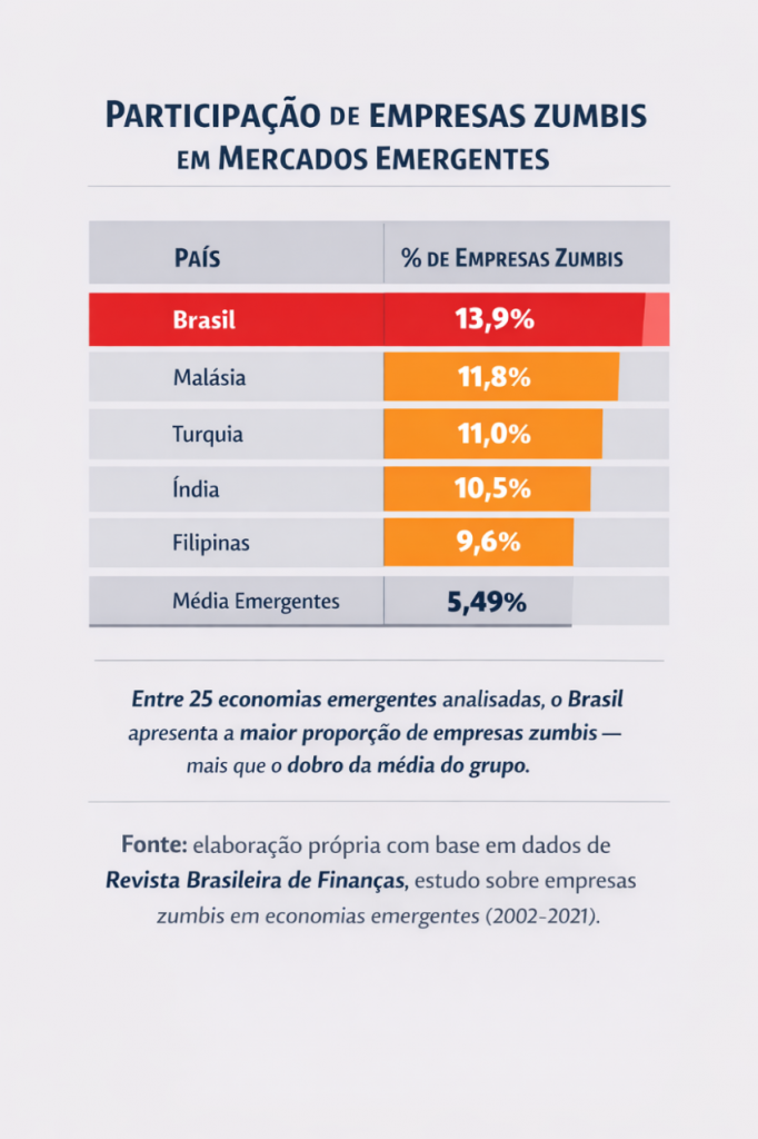 Nos últimos anos, ganhou força no debate econômico internacional o conceito de “empresas zumbis”. A expressão passou a ser amplamente utilizada na literatura econômica após estudos do Banco de Compensações Internacionais (BIS) e da OCDE, além de análises recorrentes na imprensa econômica internacional.